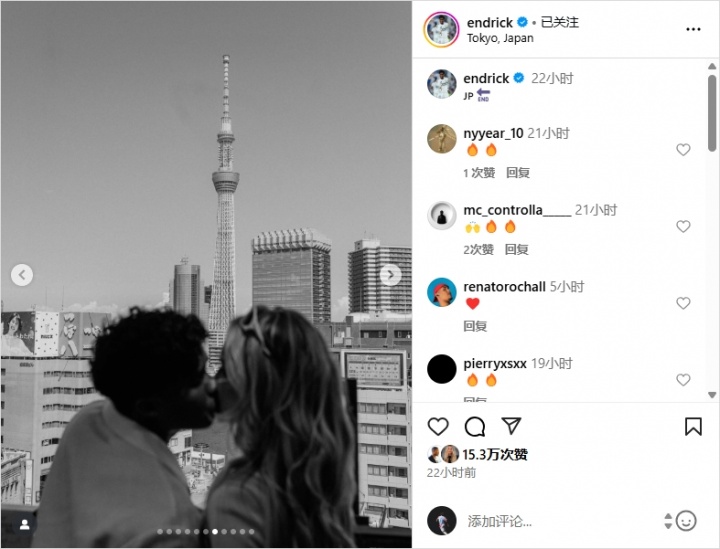 7月18日,恩德里克在他的个东说念主社媒上发布了他的婚典照,随后便于浑家开启了他们的蜜月旅行。