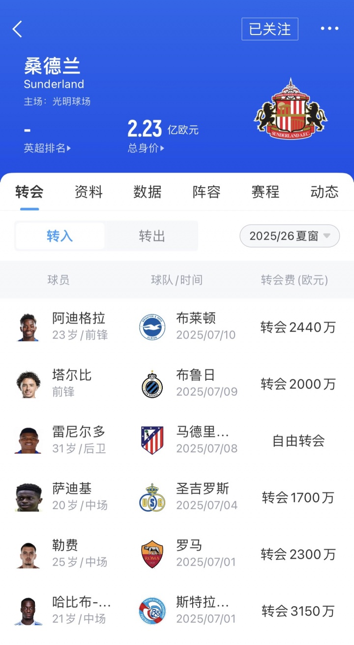 这笔来回完成后,桑德兰今夏的引援东谈主数将达到8东谈主(扎卡还未官宣),总价超1.4亿欧。