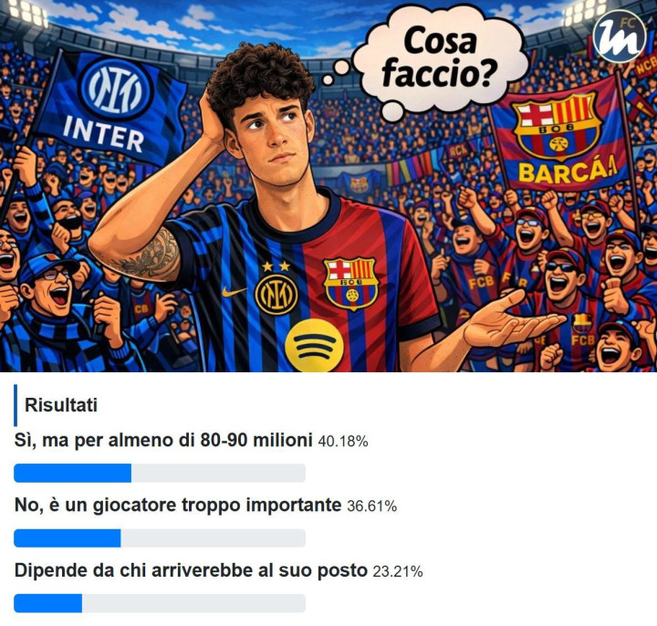 比如,国米新闻网做民调“您是否支持卖掉巴斯托尼?”目前,40.18%的球迷认为“有8000万到9000万就可以卖”,有23.21%的球迷认为“这取决于能够引进谁”。只有36.61%的球迷坚决反对出售巴斯。