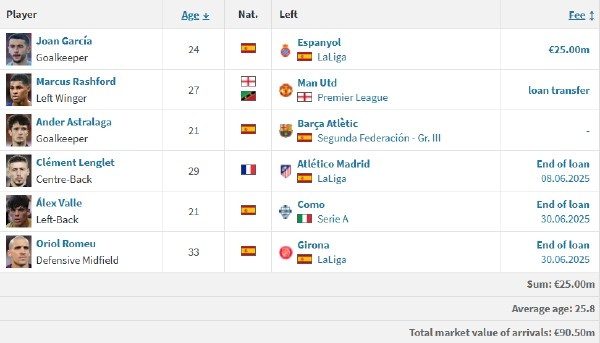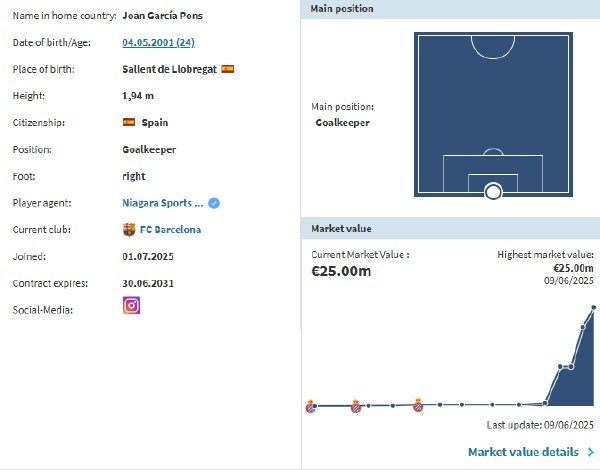 从德转的数据可以看到,巴萨在夏窗只是只是迫害了2500万欧元买下了门将霍安-加西亚,同期租赁了拉什福德。不外需要注重的是,德转评估身价上,巴萨新援的价值擢升了9000万欧。