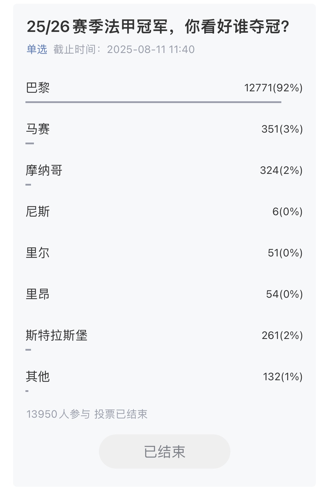法甲:巴黎(92%)