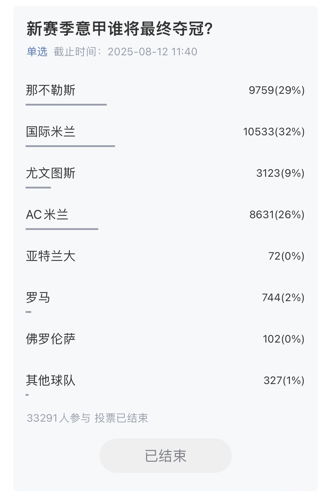意甲:外洋米兰(32%)