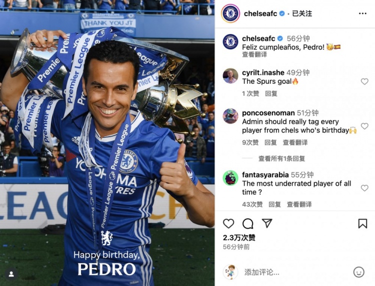 切尔西在社媒配文:佩德罗,诞辰快意!🥳🇪🇸