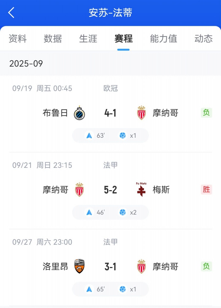 刻下,法蒂依然为摩纳哥出战3场比赛(均为替补登场),并在为数未几的上场工夫中打进了4个进球。