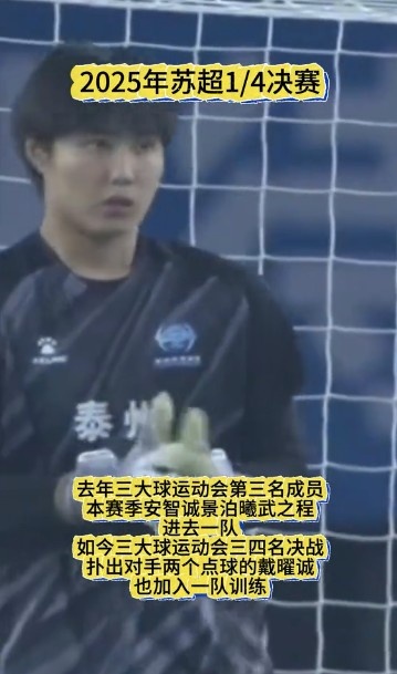 现在,亚泰队门将吴亚轲受伤,王智峰红牌停赛,除了安智诚和邹德海,18岁的年青门将戴曜城也加入亚泰一线队推行。此前,戴曜城代表泰州队开荒“苏超”比赛。