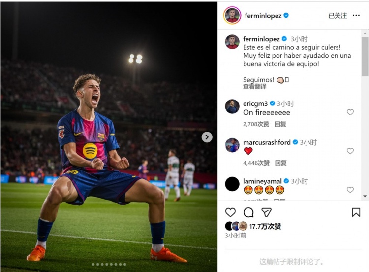 助攻双响!费尔明社媒晒情谊庆祝像片:这即是前进的标的