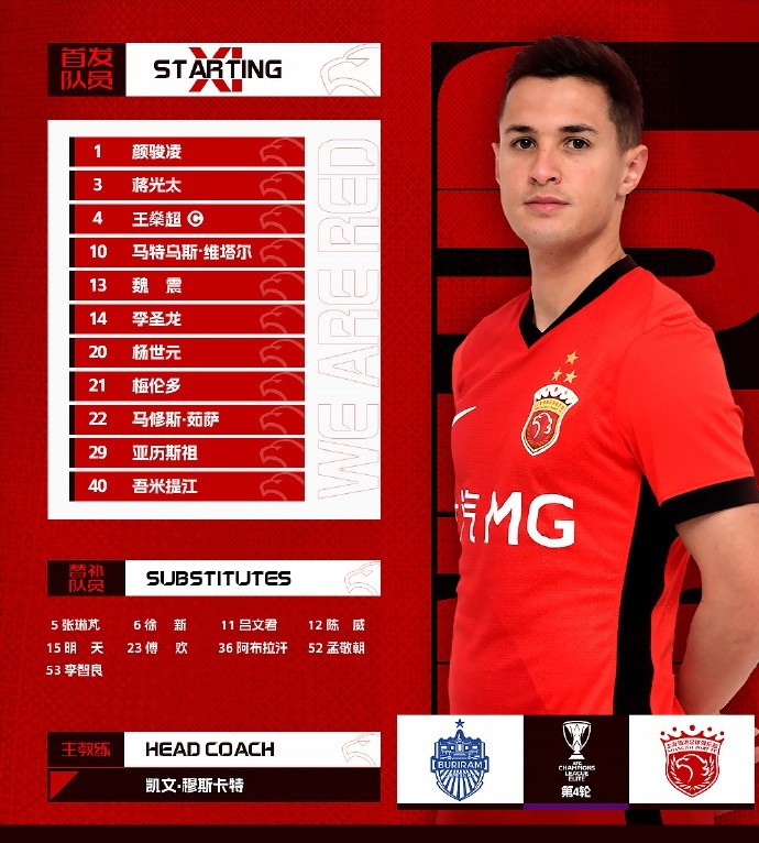 2025/2026亚冠精英联赛第4轮 武里南联vs上海海港 当天首发名单