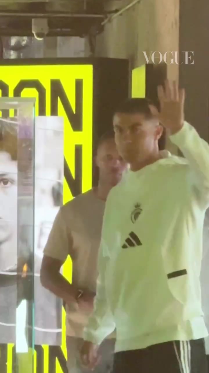 C罗与球迷们挥手打呼唤,现场的球迷们高喊C罗的名字。