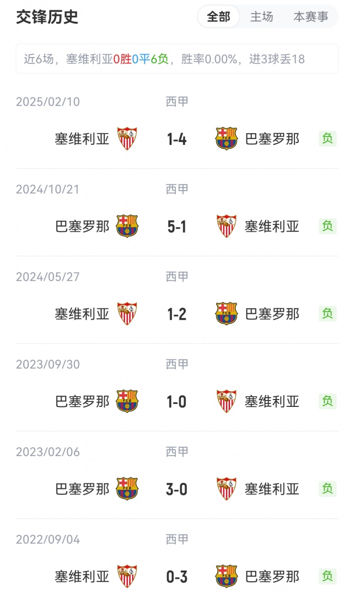 本场比赛前,巴萨联赛7战6胜1平,积19分名次西甲第2,少赛一场逾期榜首的皇马2分;塞维利亚3胜1平3负,积10分名次西甲第10。