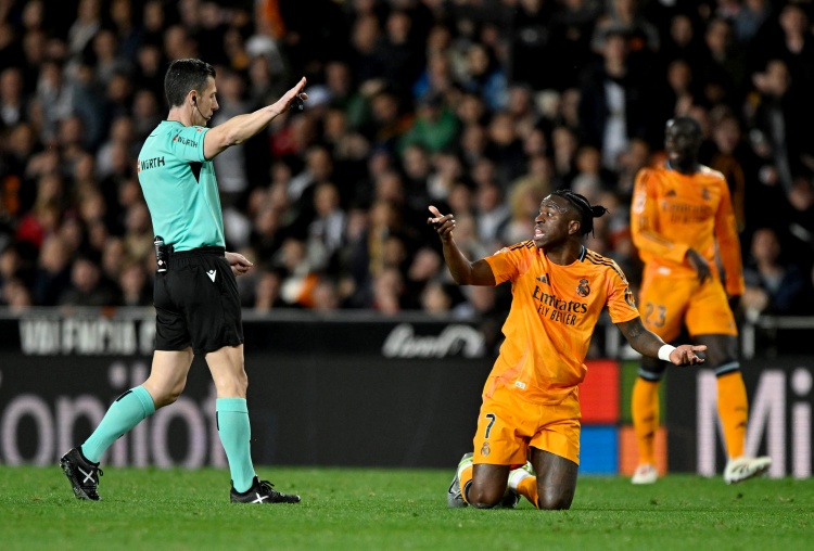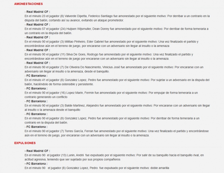 皇萨赛后裁判呈文:卢宁红牌,维尼修斯、费尔明等六东谈主黄牌
