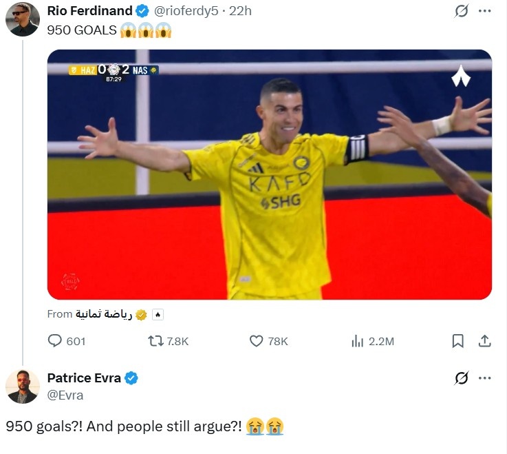 C罗950球!费迪南德称许C罗进球数,埃弗拉:尽然还有东谈主在争论?
