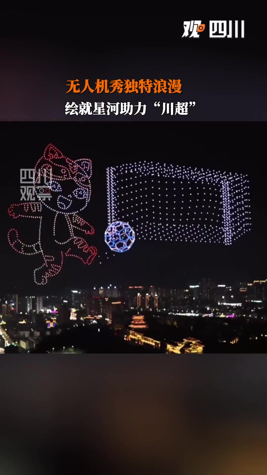 近日,在“川超”达州主场,2000架无东说念主机按序幻化出足球、达州地标等绚丽图案,以科技之光点火足球情谊,秀出巴东说念主故里的独到纵欲,助力“川超”赛事。