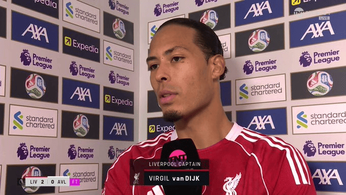 虎扑11月02日讯利物浦中卫范戴克在2-0打败阿斯顿维拉的赛后,接管TNTSport采访。