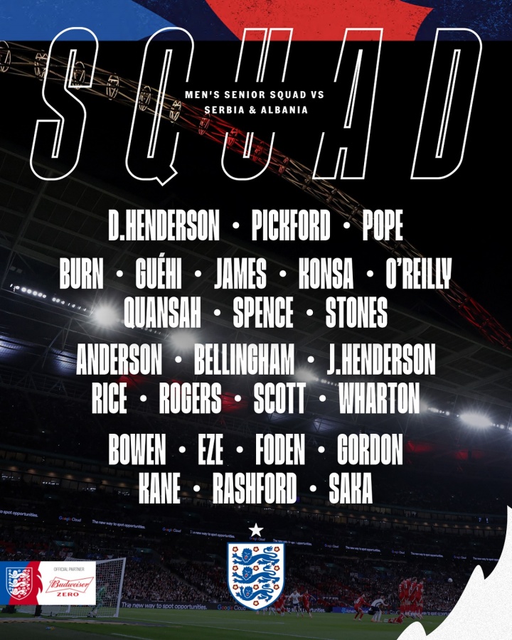 11月07日讯 英格兰公布11月世初赛名单,现在英格兰6战全胜辞世初赛欧洲区K组排行第1,仍是提前晋级2026宇宙杯正赛。本次名单中,贝林厄姆、福登回来,斯科特初次入选,斯凯利和阿诺德无缘名单。