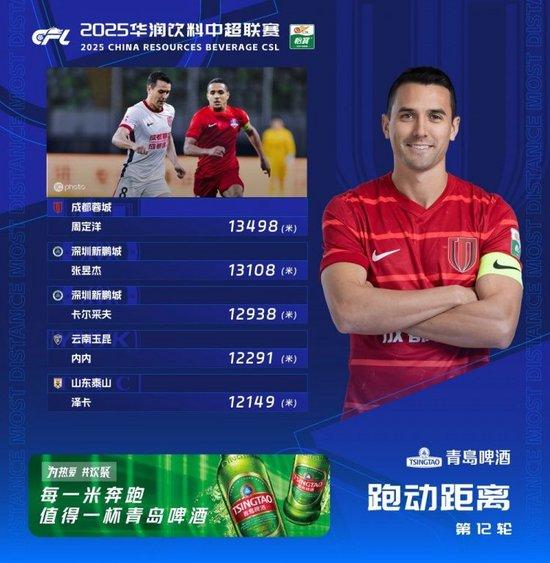 5月13日讯 中超联赛当天公布了联赛第12轮跑动榜,蓉城队长周定洋本轮以13498米的跑动距离领跑,他也曾不息5轮领跑联竞来去榜。